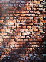 De versleten bakstenen muur vertelt verhalen van vervlogen tijden - een ruw mozaïek van roestig rood, verbrand oranje en verweerd grijs. Het oppervlak is oneffen, gegroefd, alsof de tijd zelf zijn sporen heeft achtergelaten. Op sommige plekken bladdert het pleisterwerk af, alsof de muur langzaam zijn geschiedenis prijsgeeft. Licht en schaduw spelen op de gesleten stenen en geven ze diepte en karakter. Een structuur vol tegenstellingen - robuust en toch kwetsbaar, oud en toch levend.