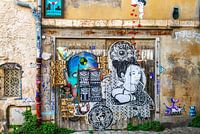 Ronddwalend in la Rochelle kwam ik deze fantastische, vrolijke oude muur tegen, een levendig straatbeeld. Kunst op een versleten gevel. Beplakt en beschilderd, je komt ogen tekort om alles te zien. Tekens en tekst vermengd met kleurige patronen. Zelfs de regenpijp is beschilderd en met kleurrijke stickers beplakt. Ook de dubbele houten deuren zijn beplakt en beschreven.