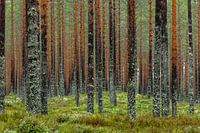 De prachtige statige bomen bij de Brattfallet waterval in Zweden. Vanaf het juiste punt bekeken lijkt het een bijna ondoordringbare wirwar van stammen. De laagste meters vaak voorzien van een dun laagje mos, wat hoger blanke kaarsrechte stammen.