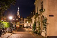 Een gezicht vanuit het straatje Muurhuizen naar de OLV toren in Amersfoort. Een mooi doorkijkje in de Middeleeuwse binnenstad van Amersfoort. 's Avonds met de verlichting levert dit een mooi plaatje op dat mooi in je interieur staat.