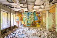 Dit is een foto van een muurschildering in een verlaten postkantoor in de grote verlaten stad Pripjat, in Chernobyl. De stad heeft ontzettend veel indruk op mij gemaakt tijdens mijn bezoek.