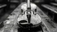 Of een schilderij van een viool, waarvan de snaren in zwart-wit de stille melodieën van klassieke symfonieën oproepen.