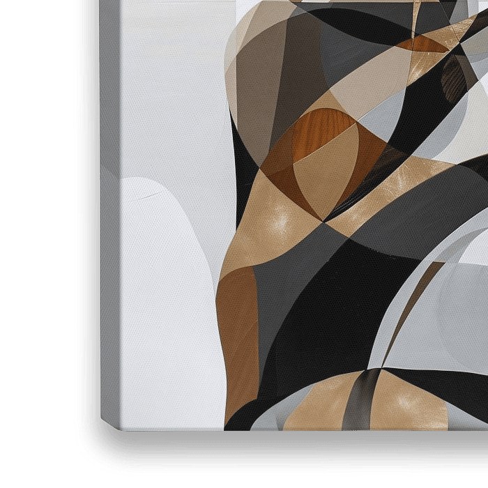 Een gestileerd portret van een vrouw in een moderne kubistische stijl met warme en aardse tinten en sterk contrast. De abstracte compositie benadrukt de serene emotie die in het portret is vastgelegd.