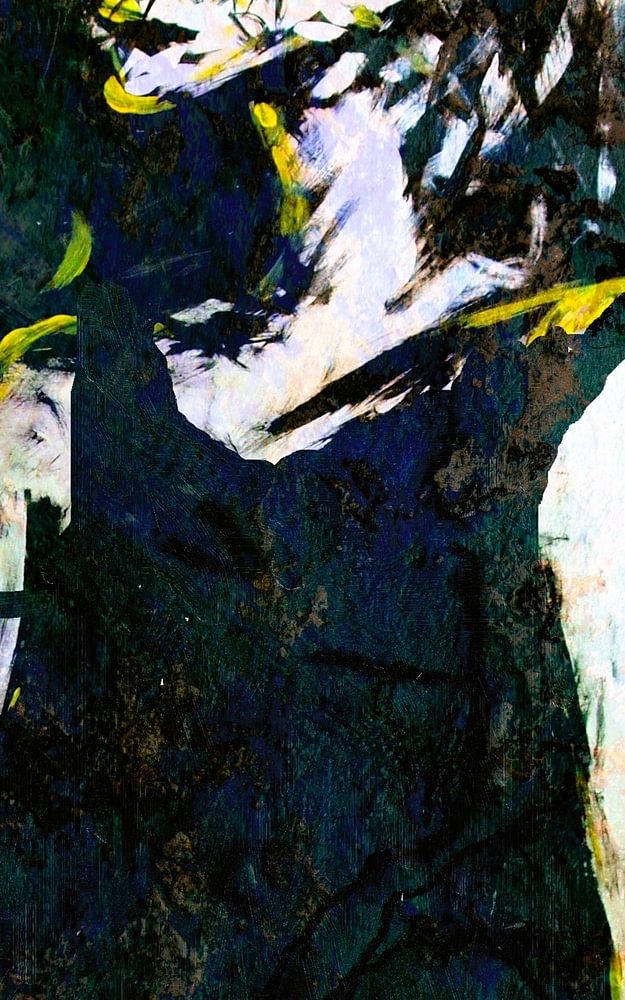 Zomaar wat schilderen, geen vooropgezet idee of plan. Ik volg de beweging, de lijnen. Al tekenend schilderend, ontstaan de vormen van een mens, een jonge vrouw. Een portret van een jonge vrouw in een expressief kleur, licht en lijnenspel.