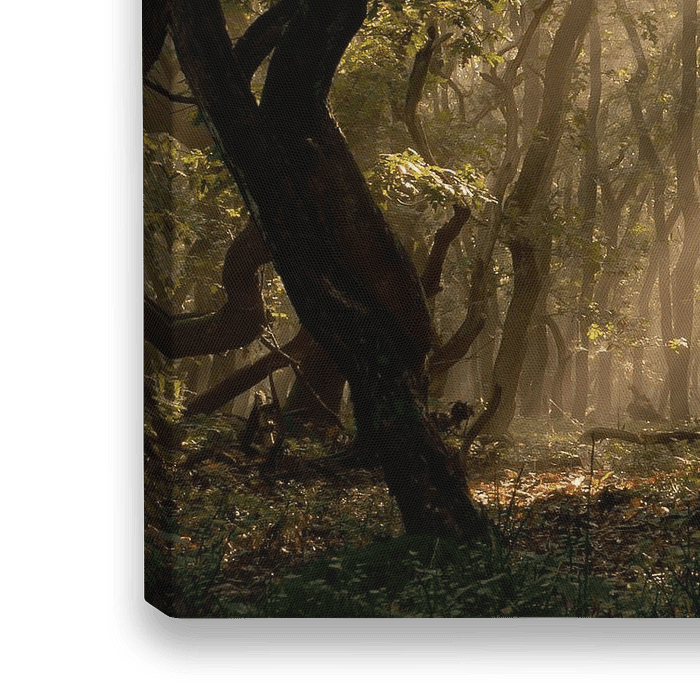 Tijdens een mistige zondag ochtend in een oud eikenhakhout bos breekt plotseling de zon door en straalt zijn stralen door de mist. Een uniek dromerig moment in het ochtendlicht van de mistige bossen van kronkelige eiken op de Utrechtse Heuvelrug.