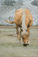Dit kunstwerk laat een grazend paard zien. Wat hangt er in de lucht? Imponeer uw gasten met schilderachtige en interessante kunst!