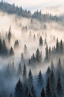 Mysterieus mistig dennenbos van Art & Soul Creations