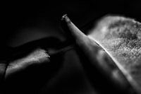 Macro-opname van rozenblaadjes tussen licht en schaduw. Zwart-wit beeld