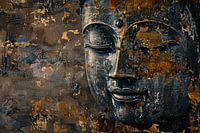 Dit intrigerende kunstwerk vangt de serene en mysterieuze uitstraling van een Boeddha-portret. De combinatie van donkere tinten met gouden accenten creëert een prachtig contrast, waardoor de Boeddha bijna lijkt te leven in een wereld tussen werkelijkheid en abstractie. Dit stuk is perfect voor liefhebbers van moderne kunst en voegt een gevoel van rust en contemplatie toe aan elke ruimte. Het is ideaal voor in de slaapkamer of kantoor, waar het een sfeer van meditatie en reflectie kan bevorderen. Het subtiele kleurgebruik maakt het gemakkelijk te combineren met verschillende interieurstijlen, terwijl het toch een opvallend en boeiend element blijft. Een uniek stuk dat zowel esthetisch aantrekkelijk als spiritueel inspirerend is.