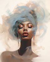 Deze betoverende portretkunst toont een vrouw gehuld in een nevel van blauwe en witte wervelingen die haar gelaatstrekken zachtjes accentueren. De krachtige blik en de perfect gevormde lippen vormen een visueel middelpunt, terwijl de mystieke rook haar schoonheid verhult en tegelijkertijd onthult. Dit stuk zou prachtig staan in een modern, minimalistisch interieur waar het een punt van contemplatie en bewondering kan worden. De zachte pastelkleuren passen goed bij neutrale kleurenpaletten en creëren een sfeer van rust en elegantie.