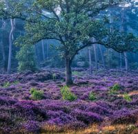 De opkomende mist geeft een speciale sfeer op deze vroege morgen. De heide bloeit in volle glorie. Het is stil en sereen in de Soester Duinen. een plek waar ik vaak kom.