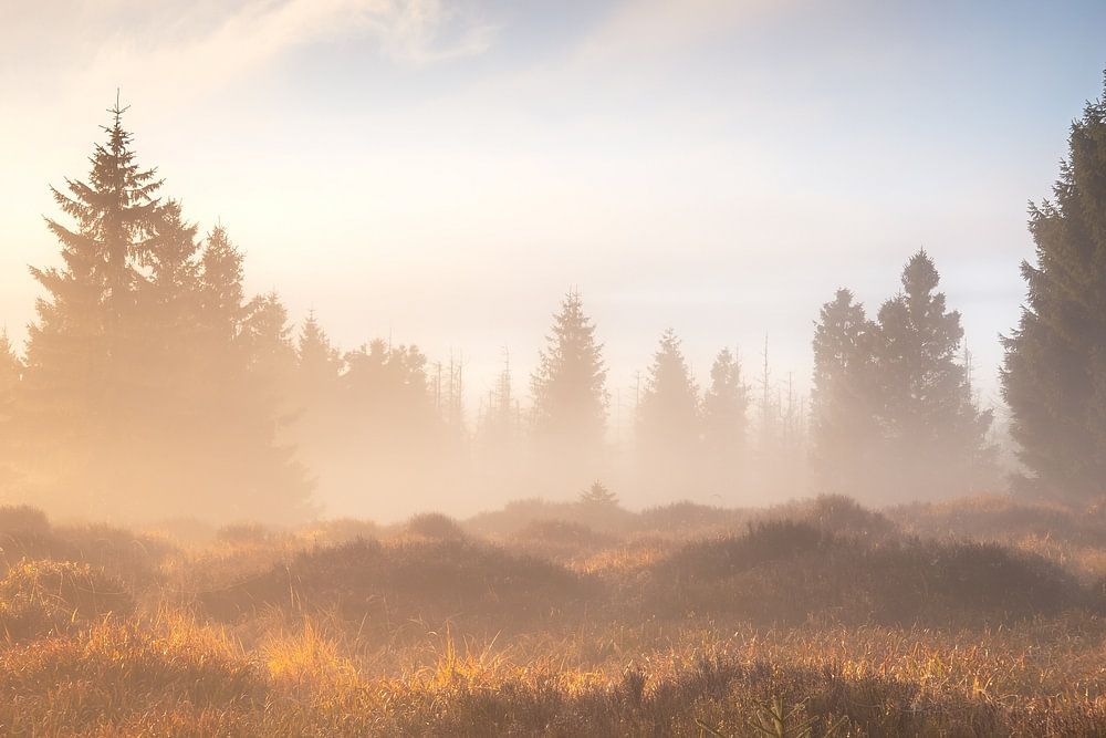 November is de beste tijd voor foto's met mist. Ik hou van deze momenten, mist en zon. Een perfect samenspel van de natuur. Vooral in de Harz is het magisch.