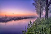 Zonsopkomst aan de Bonkevaart in Leeuwarden. Gemaakt op een mooie warme zomerochtend, ter hoogte van de finish van de elfstedentocht aan de Bonkevaart. Een sprookjes achtige gloed hangt over het land en het water.