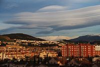 Een wolk die ontstaan is door grote luchtdrukvverschillen boven de stad Granada