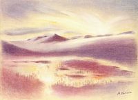 Een dromerig sfeervol landschap in de bergen van Scandinavië inspireerde mij tot dit pastelschilderij, 100% handgeschilderd en handgesigneerd!