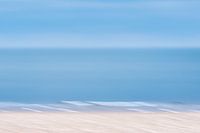 Zand en zee op een abstracte manier weergegeven , de golven kussen subtiel het strand onder een blauwe hemel .