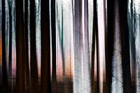Mysterieus beeld van een bos in de mist. De zachte kleurtinten dragen bij aan de sfeer. De toegepaste techniek is ICM fotografie, waarbij tijdens de belichting de camera bewogen wordt om een schilderachtige uitstraling te krijgen. Door de rechte boomstammen is er tegelijkertijd een grafisch en abstract geheel ontstaan. Een opvallend beeld voor in je interieur.
