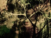 Mystiek Bos, bos indruk, bos, bomen, natuur, zwart, mysticus, magisch, blauw, oeverstaten bos, sfeer, schoonheid, inspiratie, samenvatting, stemming, betoverende, in fluorescerende, mysterieuze
