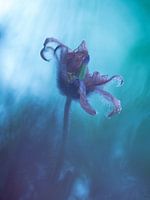 De bloem van het Wildemanskruid (Pulsatilla vulgaris) met dauwdruppels. Door middel van spelen met licht, bokeh effecten en de fijne delicate water regendruppeltjes is er een sprookjesachtig mystiek effect ontstaan. Door te spelen met de kleur en wit balans ontstonden er diverse blauw, lila en turquoise tinten voor mijn lens.