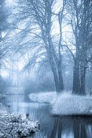 Op een koude winterochtend in januari ben ik naar mijn achtertuin gelopen om deze sfeervolle foto te maken. Door de kou en de mist krijgt het bos en de beek een mysterieus karakter.