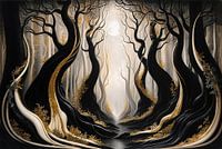 Mystiek bos met gouden bomen van Art & Soul Creations