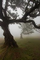 In de stilte van de mist lijkt de natuur te dansen. Deze sfeervolle opname uit het mysterieuze Fanal Forest op Madeira vangt de magie van een plek waar tijd en geluid lijken stil te staan. De grillige silhouetten van eeuwenoude laurierbomen vormen een intrigerend spel van lijnen en vormen tegen een sluier van mist. Het resultaat is een bijna dromerig tafereel dat rust, mysterie en kracht tegelijk uitstraalt.