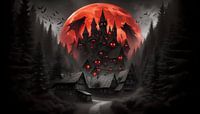 Dit indrukwekkende kunstwerk vangt de mysterieuze sfeer van een Transsylvanisch kasteel in het diepe woud. Afgebeeld in levendige zwart-, wit- en roodtinten, steekt het majestueuze kasteel af tegen een mystieke achtergrond. De gloeiende maan schijnt over het landschap en werpt zachte lichtstralen op de donkere bomen die het kasteel…