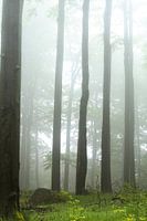 Op een hoogte van ongeveer 700-800 m veranderde de mist het beukenbos in een griezelige film.