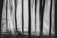 Overal klinken geluiden, zachtjes, op de grens van het gehoor. Af en toe dwarrelen er bladeren naar beneden om zich geruisloos bij alle andere neer te vleien. Kijkend tussen de vele boomstammen lijkt het bos verderop dichter en ondoordringbaar te zijn. Wanneer we dichterbij komen blijkt het bos toch weer open en zien we die ondoordringbare bomen weer achter ons waar we vandaan kwamen. Het bos leeft, de bomen lijken zich te verplaatsen en soms, heel soms onthullen ze magische plekken die er tot voor kort nog niet waren.