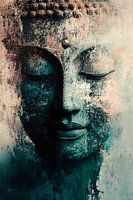 Dit bijzondere ontwerp toont een serene en rustgevende close-up van een Boeddha-hoofd, verwerkt in een artistieke stijl met een prachtige mix van blauwtinten en aardse nuances. De verweerde texturen voegen een extra laag mystiek en diepgang toe, perfect voor het creëren van een kalmerende sfeer in elk interieur. Ideaal voor een meditatieruimte, slaapkamer of hal, dit ontwerp combineert spiritualiteit met abstracte kunst voor een unieke visuele ervaring. Een perfecte aanvulling voor wie op zoek is naar balans en inspiratie.
