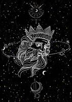 Een magisch werk met een mystieke godheid en symbolen uit de heilige geometrie, alchemie en magie.