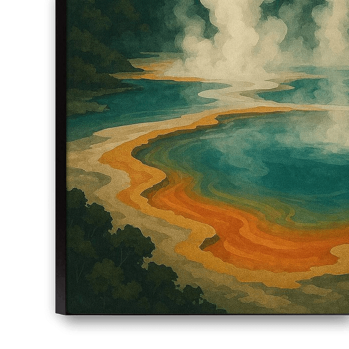 Dit werk is perfect voor liefhebbers van geologie, vulkanische landschappen, natuurwetenschappen of iedereen die gefascineerd is door plaatsen die zowel sereen als krachtig aanvoelen. De rijke, aardse tinten passen goed bij rustieke interieurs, modern-natuurlijke decors, wellnessruimtes, spa's en creatieve studio's. De warme stoomwolken brengen zachtheid in het tafereel, waardoor het zelfs met de intense kleuren en geologische dramatiek rustgevend is.