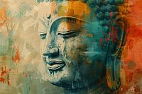 Dit unieke kunstwerk toont een mystieke weergave van Boeddha, gemaakt in een dynamische en abstracte stijl die doet denken aan het werk van Wassily Kandinsky. De combinatie van levendige kleuren zoals oranje, groen en blauw, en de subtiele accenten van grijs en wit, creëren een visueel boeiend geheel. Ideaal voor moderne interieurs, kan dit schilderij een bijzondere toevoeging zijn aan uw slaapkamer of kantoor, en zorgt het voor een serene en inspirerende sfeer. Laat u meevoeren door de abstracte vormen en de kalmerende uitstraling van dit prachtige kunstwerk, dat zowel rust als levendigheid in uw ruimte brengt.