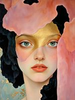 Mystieke elegantie - portretschilderij met abstracte vormen in eigentijdse kleuren - Toon je moed met dit moderne en abstracte kunstwerk dat doet denken aan de grote werken van de oude meesters. Kies zelf het formaat en het materiaal uit de vele opties. Verander je huis in een toevluchtsoord van kunst, precies zoals jij het wilt!