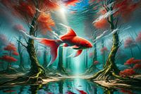 Koop dit digital art kunstwerk Mystieke karpers in een magisch onderwaterbos van artefacti als reproductie geprint op canvas, aluminium dibond, (ingelijste) fotoprint, behang en ArtFrame. Voor jou op maat geprint in Fine-Art kwaliteit.
