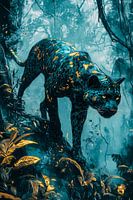 Dit indrukwekkende ontwerp toont een mystieke luipaard die zich sierlijk door een sprookjesachtig bos beweegt. De gedetailleerde weergave van het dier en de omringende natuur wordt versterkt door een harmonieus kleurenspel van teal en goud. Het contrast tussen het dier en de omgeving creëert een fascinerende visuele ervaring die een gevoel van mysterie en kracht oproept. Dit kunstwerk is perfect voor wie een uniek, modern accent aan zijn interieur wil toevoegen. Ideaal voor slaapkamers of kantoren om een sfeer van elegantie en inspiratie te creëren.
