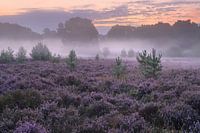 Koop dit landschapskunstwerk Mystieke ochtendsfeer op de Brunssumer Heide - Een paarse bloemenzee in de ochtendnevel van Rolf Schnepp op canvas, aluminium dibond, (ingelijste) fotoprint, behang en ArtFrame, op maat geprint in Fine-Art kwaliteit.