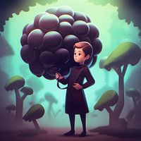Het artwork bestaat uit een opvallende compositie van een persoon die een opvallende grote zwarte vrucht bekijkt, tegen een achtergrond van sfeervolle wolken. De originele karakterontwerpen zijn visueel intrigerend en worden verder versterkt door de aanwezigheid van etherische bomen. De subtiele kleurverlopen voegen diepte en dimensie…