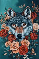 Een uniek kunstwerk waarin een majestueuze wolf centraal staat, omringd door een weelderige verzameling bloemen in warme oranje- en rode tinten. De combinatie van het dierlijke en het florale creëert een intrigerende balans tussen kracht en schoonheid. Dit ontwerp is perfect om een vleugje mystiek en verfijning toe te voegen aan je interieur. Ideaal voor in een woonkamer, kantoor of slaapkamer, waar het direct een gespreksonderwerp vormt. De levendige kleuren en de gedetailleerde stijl maken het een statement piece dat bij zowel moderne als eclectische interieurs past.