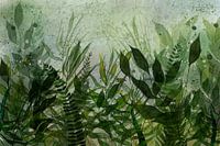 "Nature in Harmony" is een suggestief aquarelschilderij dat de essentie weergeeft van een bloeiende wildernis waar groene bladeren en planten naadloos in elkaar overgaan en een symfonie van eenheid creëren. In dit rustige kunstwerk danst het weelderige gebladerte samen in perfecte balans, wat de inherente harmonie van de natuur weerspiegelt.
