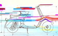 Ervaar de Vespa-cultuur op een nieuwe manier met dit kunstwerk dat digitale collages en neoneffecten combineert.