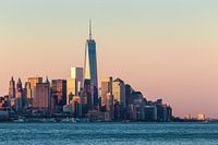 Lower Manhattan Skyline gezien vanuit New Jersey bij zonsopgang, Verenigde Staten