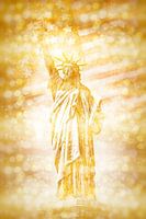 Het vrijheidsbeeld op Liberty Island - de meest beroemde bezienswaardigheid van New York City. Prachtige enscenering in het goud en hij heeft de Amerikaanse nationale vlag.