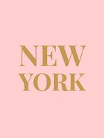 Tijdloze typografie poster "NEW YORK" in roze achtergrond & gouden tekst