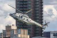 Een NH-90 helikopter van het Defensie Helikopter Commando nam tijdens de Wereldhavendagen deel aan een demonstratie samen met de Koninklijke Marine.