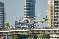 Een NH-90 helikopter van het Defensie Helikopter Commando nam tijdens de Wereldhavendagen deel aan een demonstratie samen met de Koninklijke Marine.