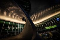NS station Arnhem heeft een mooi lijnenspel, vol met verlichting dat weerspiegeld in het glas