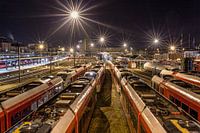 Foto van het NS station in Groningen. De foto is gemaakt vanaf het Emmaviaduct zodat ik over de treinen heen kon fotograferen.