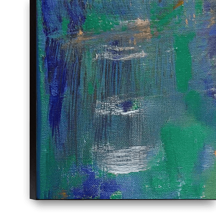 De kleuren goblin en ultramarijnblauw dragen diepte en rust in zich, bijna als een innerlijke ruimte.