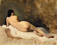 De smachtende, sensuele pose van deze vrouw doet sterk denken aan de populaire schilderijen van odalisken, slavinnen en concubines in Turkse harems. Veel van dit doek is dun geschilderd of geheel blanco gelaten, wat suggereert dat het eerder een figuratieve studie was dan een voltooid kunstwerk. De Franse Academie in de jaren 1800 zag de afbeelding van het naakt als de ultieme maatstaf voor de vaardigheid van een kunstenaar. Omdat modellen vaak van houding veranderden, moesten studenten snel en zonder verfraaiing werken. Hier voltooide de kunstenaar alleen die gebieden die nodig waren om de contouren van het lichaam van het model te benadrukken.